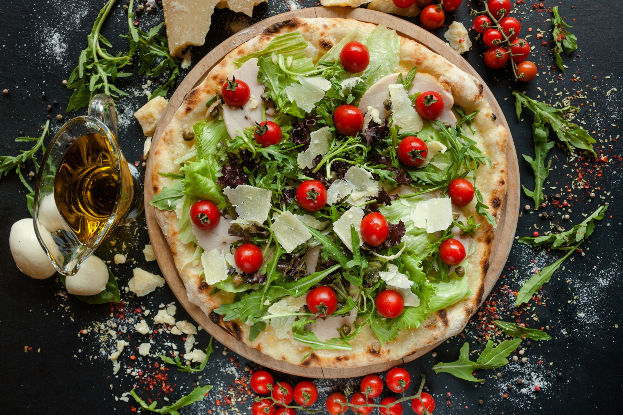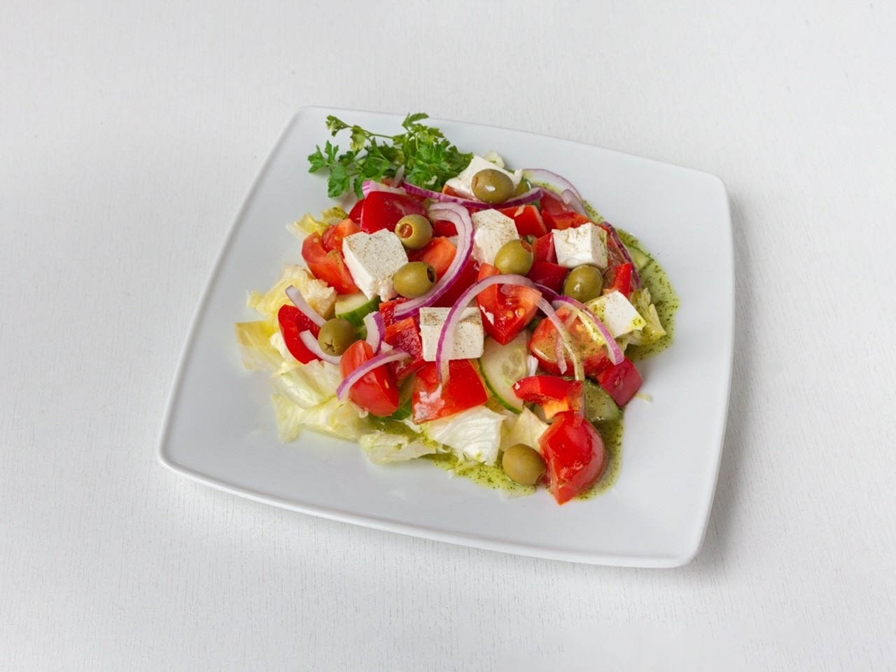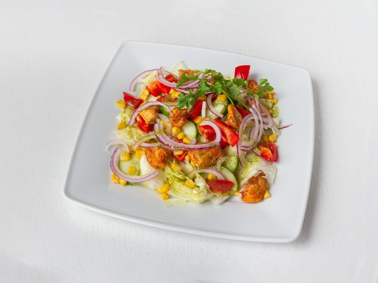 cebula, ogórek konserwowy, kukurydza, boczek, brokuły, papryka, sos opakowanie pizza45,00 zł48,00 złSałatki