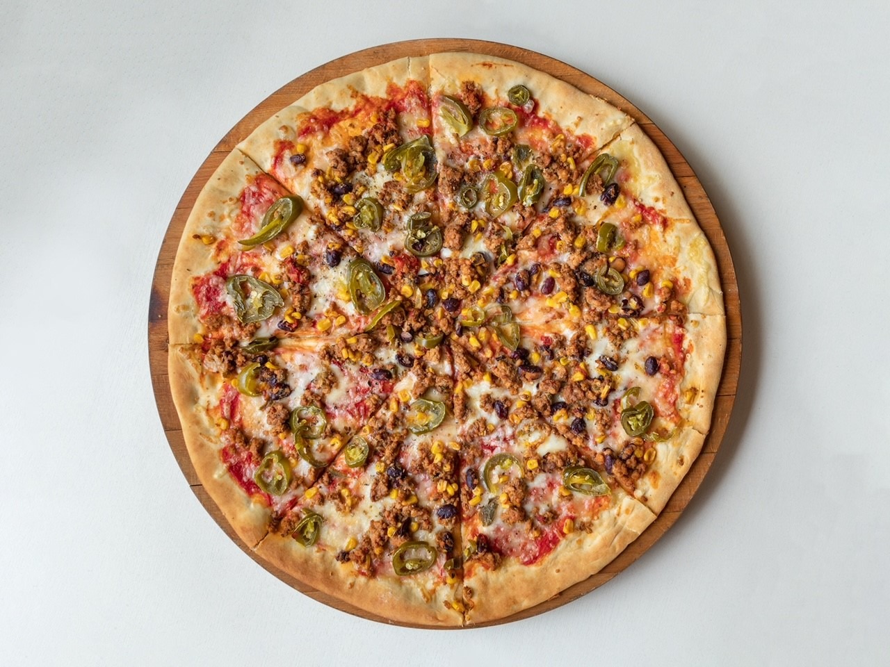 sos, ser, kurczak, feta, papryka, pieczarki, kukurydza, cebula, oregano45,00 zł48,00 zł