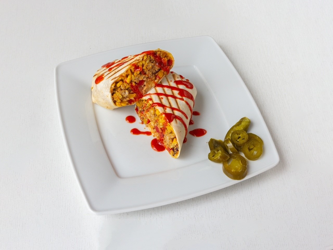 kapusta pekińska, papryczki jalapeno, kukurydza, szynka, ogórek konserwowy, sos jogurtowy